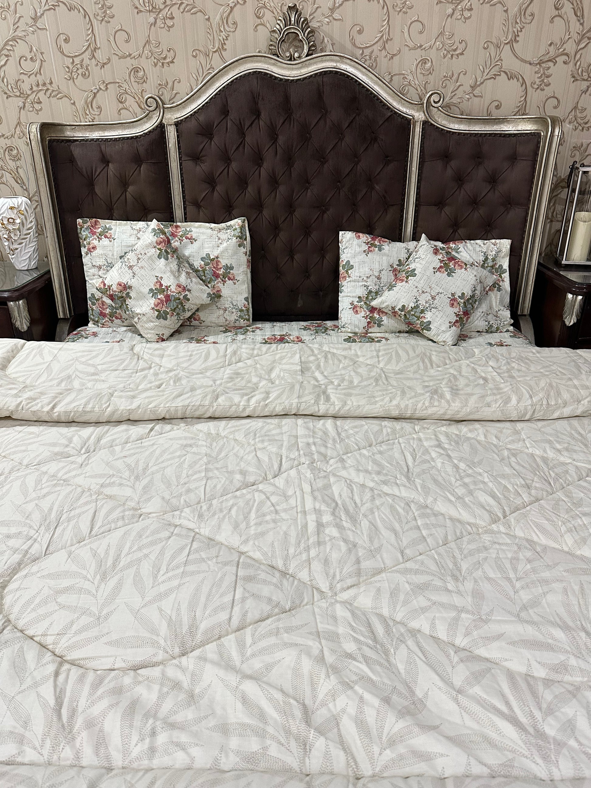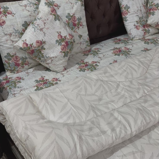Meet our Cream Comforter which is designed to bring a touch of refined beauty and cozy warmth to your bedroom. Made with soft cotton fabric and filled with plush polyfill, this king-sized comforter offers a perfectly balanced feel that’s warm yet lightweight. Featuring a stunning design on one side, it adds a stylish focal point to your room while maintaining a smooth, clean look on the reverse. Ideal for all seasons, it keeps you comfortably snug in winter and comfortably breathable in warmer months. Soft, durable, and effortlessly elegant, this comforter creates a fresh and soothing vibe that transforms your space into a restful retreat.