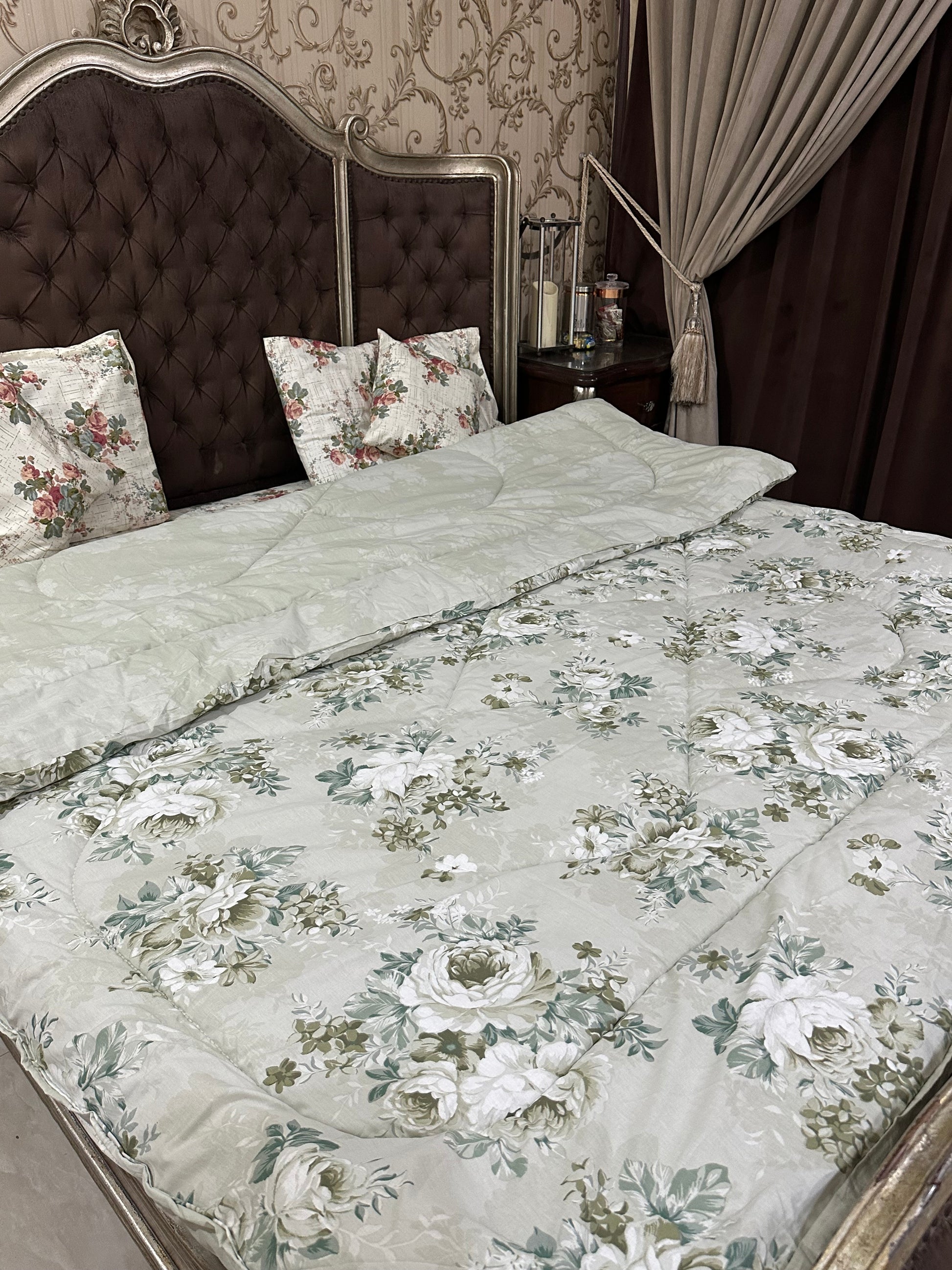 Meet our Double-Sided Comforter , the perfect combination of softness, warmth, and effortless style. Crafted with gentle cotton fabric and filled with cozy polyfill, this king-sized comforter offers plush comfort without feeling heavy. It's beautiful double-sided design adds versatility and charm, giving your room a fresh, soft, and cool vibe that instantly uplifts your space. Designed to keep you comfortable through chilly nights and breezy evenings, it’s ideal for all seasons. Durable, breathable, and luxuriously soft, this comforter is everything your bedroom needs to feel inviting and refreshed.